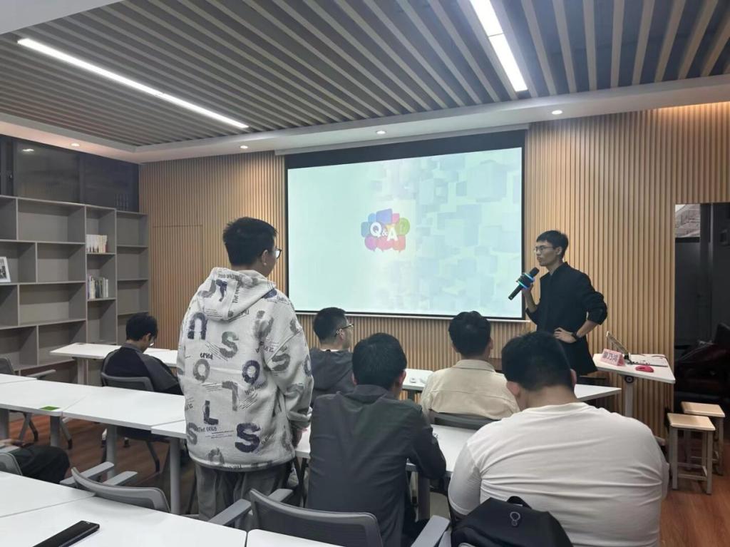 活动中,蒙乃鸿总监围绕当前就业形势、行业发展趋势、岗位能力需求以及简历撰写与面试技巧等内容展开系统讲解,并结合自身在智能科技领域的丰富经验,为同学们提供了切实可行的求职建议。在互动交流环节,同学们积极提问,蒙总监耐心倾听并细致解答,深入了解大家在就业意向与实际求职中遇到的困惑,给予针对性指导与支持,有效助力毕业生实现更高质量就业。