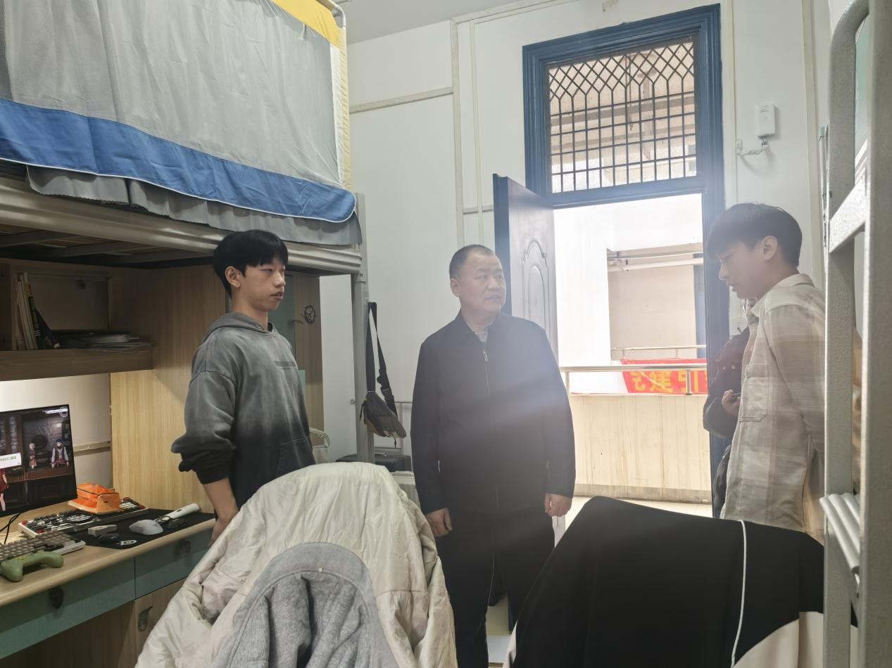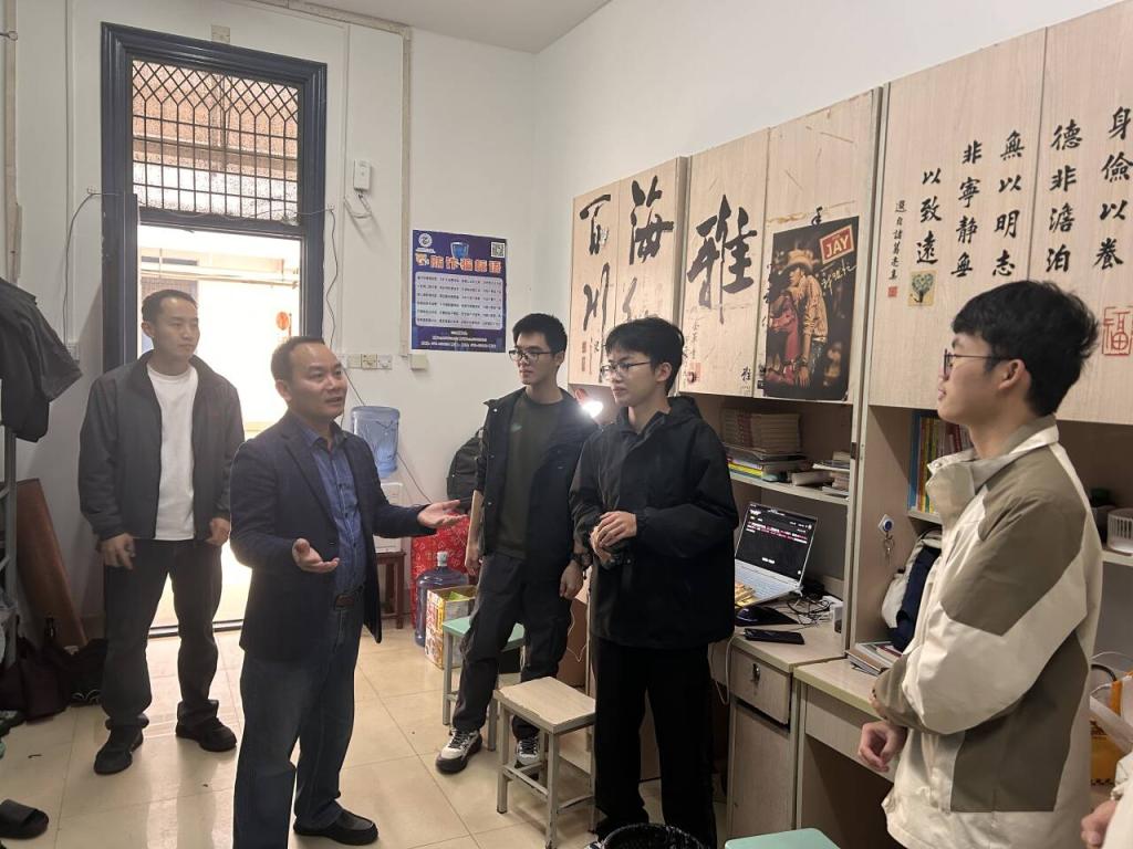 在学生宿舍,重点围绕消防安全、用电规范、环境卫生等方面情况,农庆能书记、钟志贤院长一行查看了宿舍用电设备、消防设施状态及公共区域卫生情况,对个别宿舍存在的有关问题,现场提出整改意见。并叮嘱同学们离校前务必切断电源、关好门窗,切实做到安全离校、平安度假。