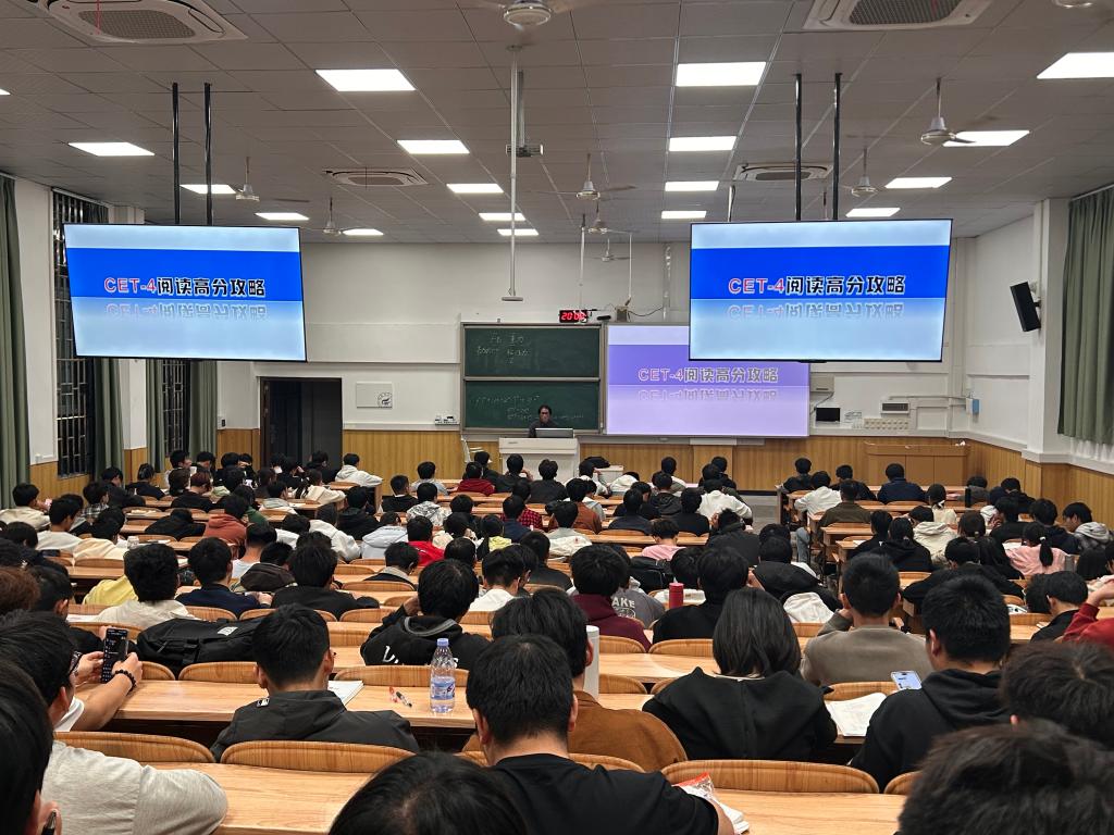 为持续推进学风建设,助力2025级学生提升英语综合应用能力,10月20日晚,英语阅读专项辅导讲座于06207教室举行。本次讲座特邀外国语学院张华老师担任主讲。本次讲座聚焦英语阅读的核心难点,旨在帮助学生突破理解瓶颈,掌握科学高效的阅读方法,为大学英语四级考试及未来学术英语学习奠定坚实基础。
